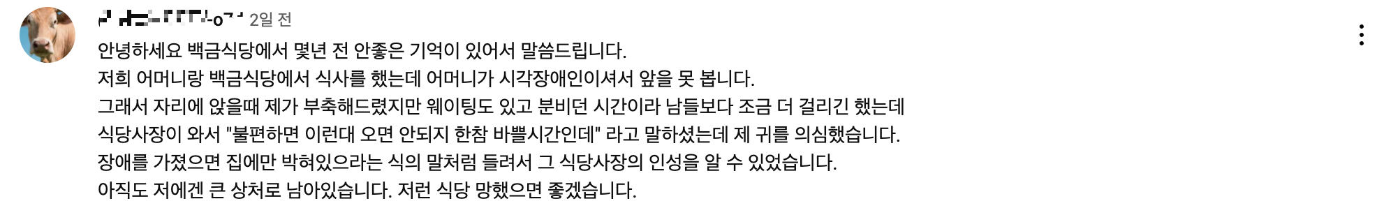 - "예전에 갔다가 기분만 상해서 음식도 제대로 못 먹고 나왔다"