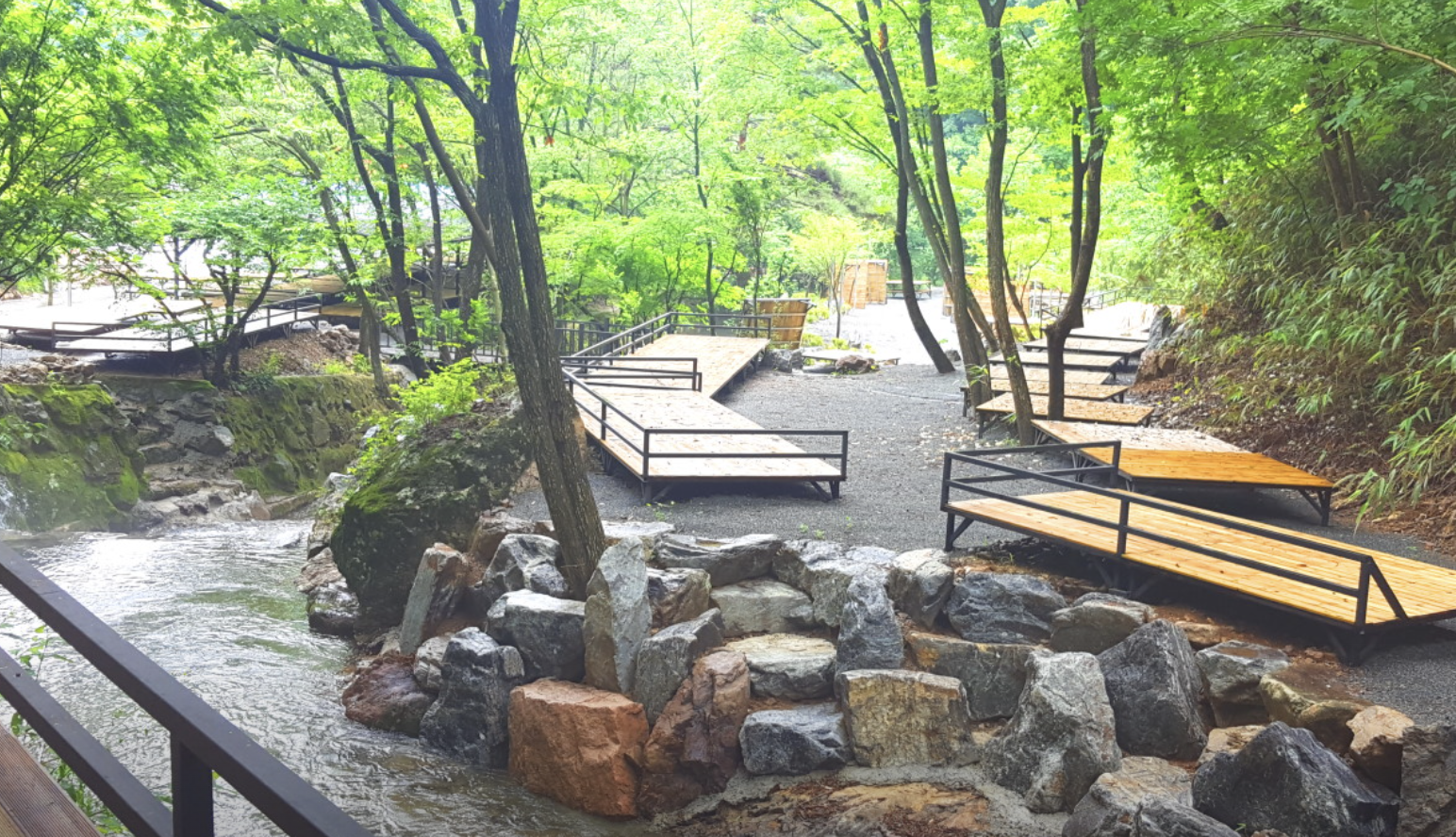 직원분들이 수시로 나뭇잎 같은 부유물을 건져내고, 수질 관리에도 신경 쓰는 덕분에 물이 정말 맑았어요. 수영장에 여과기가 설치되어 있어서 계곡 특유의 물 냄새도 나지 않아 좋았습니다.